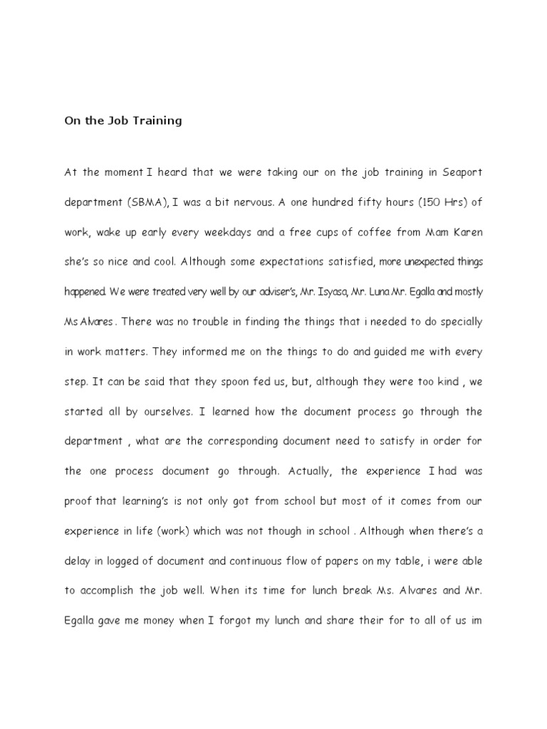 On the job training is a part of the curriculum we have to comply with in order to graduate that is my first impression about ojt. Example of reflection paper about work immersion. Page size should be white with size of 8 ½ by 11. Font size should be 12 points. Immersion is a powerful strategy to enhance cultural competency in nursing. Selling a house can be frustrating if you don't have the right information. Reflection on the immersion experience. For reflective essay examples, readers expect you to evaluate a specific part of your life. Me and my classmate also learned some unfamiliar batangueno words, though it is irrelevant to put it on my reflection paper, it is a thing that i wanted to share. The 486 hours needed to finish the ojt period was a drag at first but later on it felt like time was just. Immersion week reflection portfolio essay. Drawing from research and theory on dual process models we develop and test a reflection strategy to stimulate deeper learning after feedback. My reflection by <student > during my work experience at <company>, i was fortunate enough to have experienced firsthand and learned, many different sides of what goes into a project, the general process of how a project is initially planned, developed and completed;